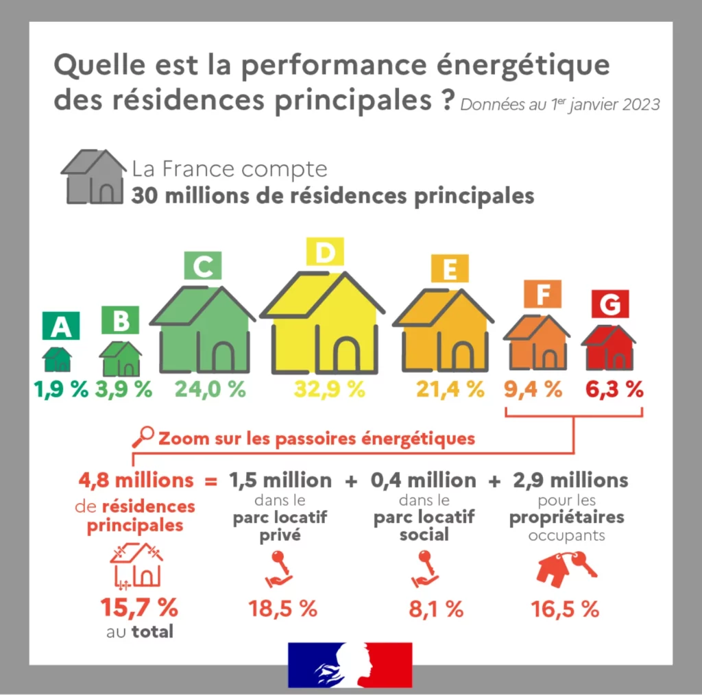 • Depuis le 1ᵉʳ janvier 2023 : une partie des logements classés G, considérés comme “énergétiquement indécents” ne peuvent plus être proposés à la location.